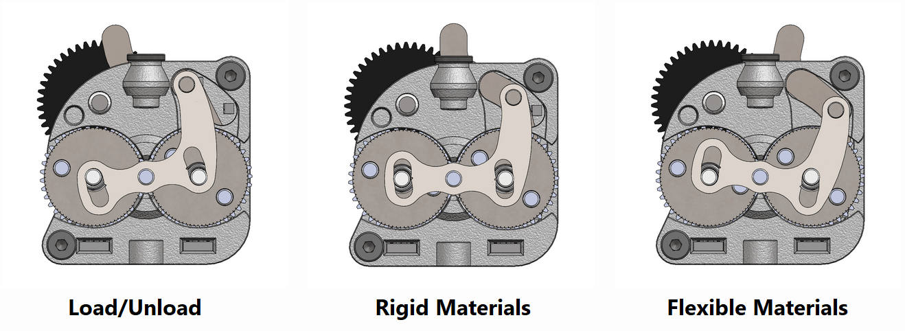 Keep the lever in the middle (aligned with the PTFE tube) when printing PLA/PETG and other rigid materials.